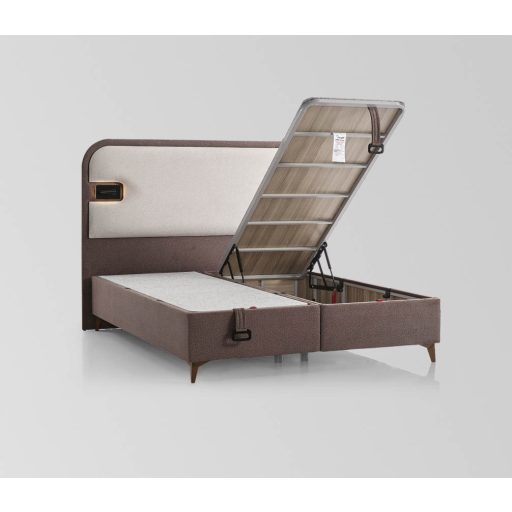 Az ágy teljes felülete alatt nagy méretű tároló található, amely könnyen nyitható gázrugós rendszerrel. A gázliftes ágyak egyik legnagyobb előnye, hogy teljes hozzáférést adnak az ágy alatti tárolóhoz, így helytakarékos és praktikus megoldást nyújtanak.
